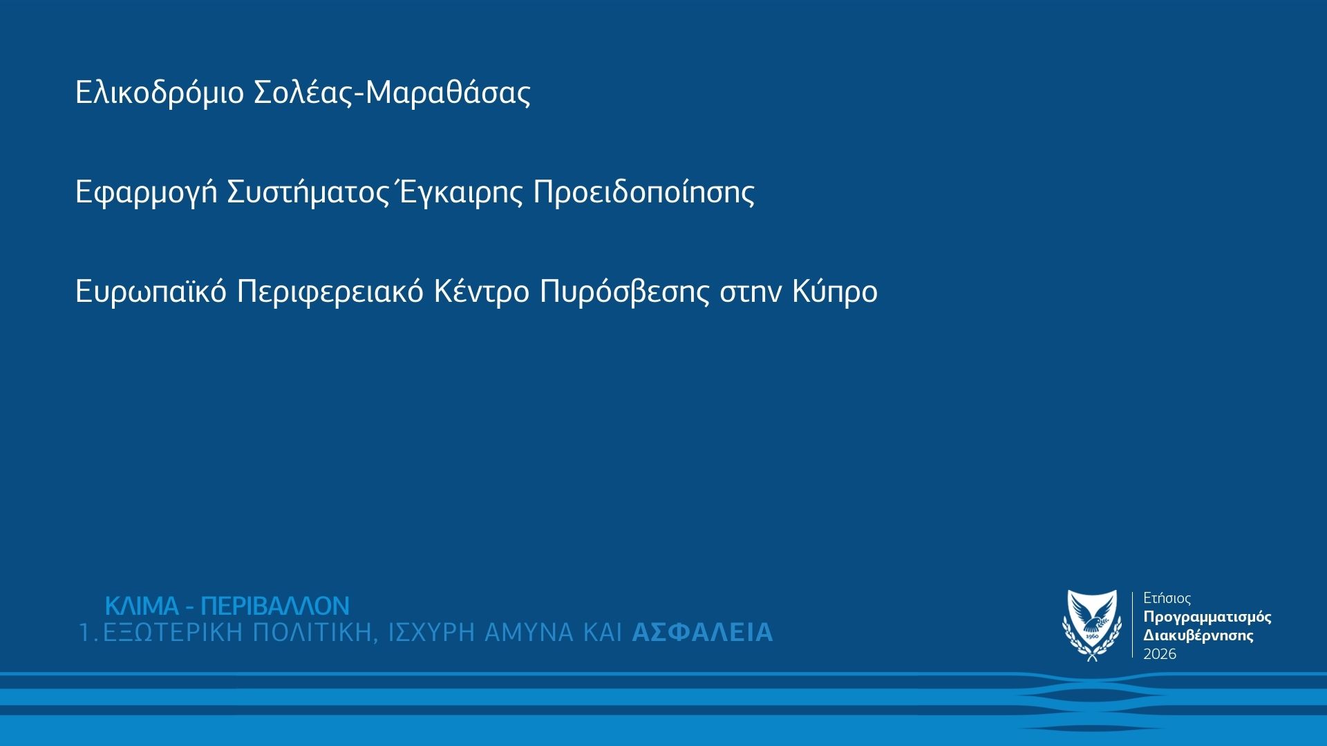Στο πλαίσιο αυτό, ολοκληρώνουμε την κατασκευή του ελικοδρομίου Σολέας-Μαραθάσας, ενισχύοντας ουσιαστικά τις δυνατότητές μας στην Αεροπυρόσβεση, την Έρευνα και τη Διάσωση. Παράλληλα, προχωρούμε στην εφαρμογή του Συστήματος Έγκαιρης Προειδοποίησης, με στόχο την πλήρη λειτουργία του εντός του 2026. Το ζήτημα της Πολιτικής Προστασίας αποτελεί προτεραιότητα και της Κυπριακής Προεδρίας, με την προώθηση των συζητήσεων για τον σχετικό Ευρωπαϊκό Μηχανισμό και τη δημιουργία, όπως η ίδια η Πρόεδρος της Επιτροπής έχει ανακοινώσει, Περιφερειακού Κέντρου Πυρόσβεσης στην Κύπρο.