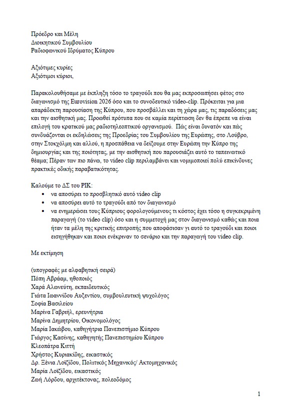 Ο διαγωνισμός, που φέτος συμπληρώνει 70 χρόνια, δεν σχετίζεται με την Προεδρία που η χώρα μας έχει αναλάβει και που η δημόσια Ραδιοτηλεόραση στηρίζει ποικιλοτρόπως. Πρόκειται για γιορτή που ενώνει μέσω της μουσικής, εξού και η συντριπτική πλειοψηφία των χωρών στέλνουν πολύ συχνά τραγούδια που χαρακτηρίζονται για τη διασκέδαση που προσφέρουν τόσο στις δεκάδες χιλιάδες που βρίσκονται στο στάδιο στους ημιτελικούς και τον τελικό, όσο και στις δεκάδες εκατομμύρια τηλεθεατές ανά τον κόσμο. Αυτό επιχειρεί και η φετινή συμμετοχή της Κύπρου με μια εκπρόσωπο της Διασποράς. Οι Κύπριοι της Διασποράς δικαίως χαρακτηρίζονται για την αγάπη που συνεχίζουν να τρέφουν για τις παραδόσεις και τα έθιμα μας. Παραδόσεις, έθιμα και τοπία ή πραγματικότητες της σημερινής κυπριακής κοινωνίας που στο ύφος του τραγουδιού παρουσιάστηκαν με τη μοντέρνα ματιά ενός διακεκριμένου σκηνοθέτη στο κλιπ που συνοδεύει το τραγούδι.