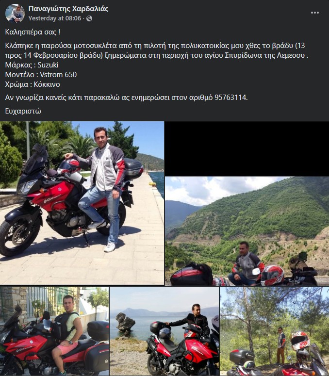 Κλάπηκε μοτοσυκλέτα από τη πιλοτή πολυκατοικίας στη Λεμεσό ανήμερα του Αγίου Βαλεντίνου.