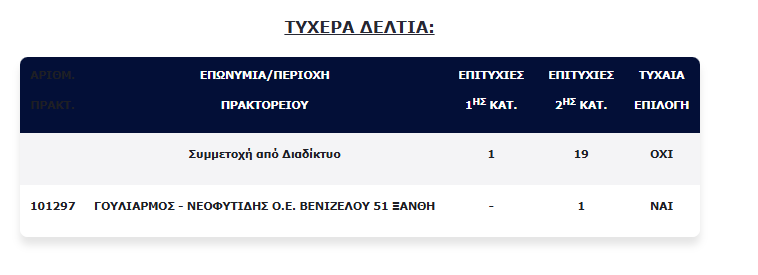 Επίσης, ένα (1) τυχερό δελτίο βρέθηκε στη 2η κατηγορία (5), τα οποίο κερδίζει το ποσό των €100.000,00 για κάθε επιτυχία.