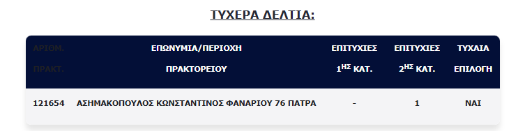 Επίσης, ένα (1) τυχερό δελτίο βρέθηκε στη 2η κατηγορία (5), το οποίο κερδίζει το ποσό των €100.000,00.