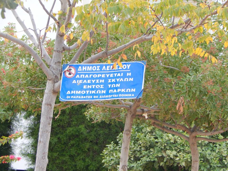Ακόμη ένα χαρακτηριστικό είναι πως τα σκουπίδια ξεχειλίζουν από τους κάδους…ενώ η πινακίδα του Δήμου Λεμεσού που αναφέρει πως απαγορεύεται η είσοδος για σκύλους, βρίσκεται στο κλαδί ενός δέντρου.!