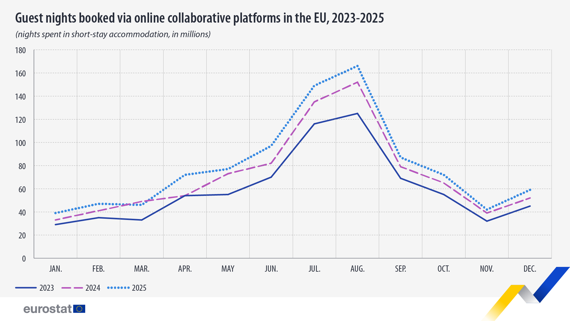 ​Τα δεδομένα που αφορούν το τρίτο τρίμηνο του 2025, την περίοδο δηλαδή που η τουριστική κίνηση χτυπά «κόκκινο», αποκαλύπτουν το μέγεθος της δυναμικής του κλάδου. Συγκεκριμένα, κατά τους μήνες Ιούλιο, Αύγουστο και Σεπτέμβριο, οι διανυκτερεύσεις στην Κύπρο μέσω των ψηφιακών πλατφορμών ξεπέρασαν το εντυπωσιακό φράγμα των 3,1 εκατομμυρίων. Ο Αύγουστος αναδείχθηκε ως ο απόλυτος πρωταγωνιστής, συγκεντρώνοντας τη μερίδα του λέοντος των κρατήσεων, γεγονός που αποδεικνύει ότι οι επισκέπτες εμπιστεύονται πλέον μαζικά τα καταλύματα βραχυπρόθεσμης μίσθωσης για την κορύφωση της καλοκαιρινής τους ανάπαυλας.