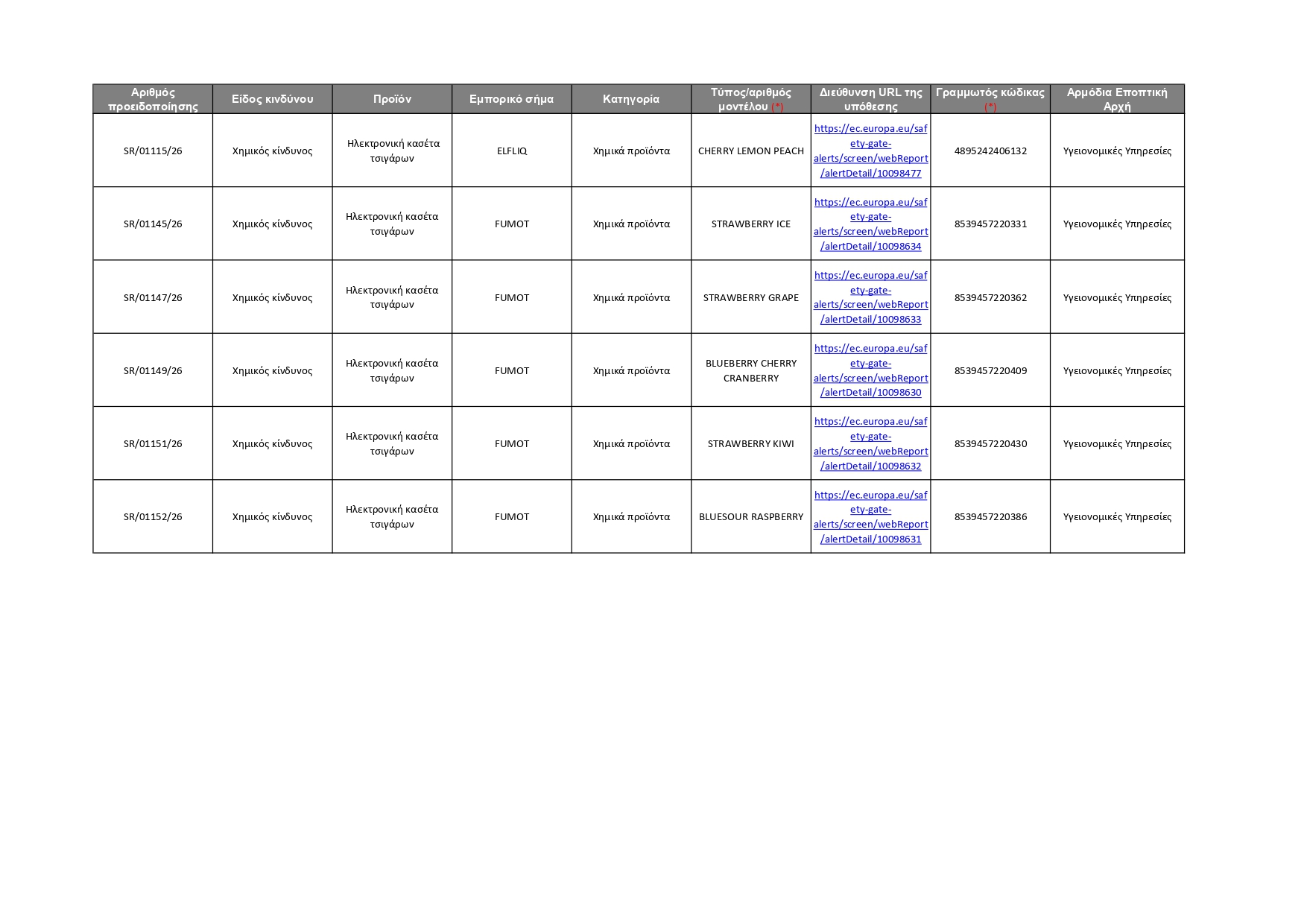 Τα προϊόντα αυτά εντοπίστηκαν στις αγορές διαφόρων κρατών μελών της ΕΕ και στη συνέχεια κοινοποιήθηκαν στο Σύστημα Safety Gate για ενημέρωση των καταναλωτών.