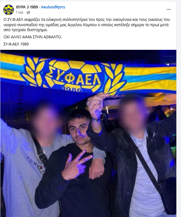 Παράλληλα, σε προσωπικές αναρτήσεις, φίλοι του μιλούν για ένα παιδί γεμάτο καλοσύνη και χαμόγελο, που έφυγε τόσο άδικα. «Άγγελέ μου, ας σε προσέχει ο Θεός… έφυγες νωρίς λεβέντη», γράφουν συγκλονισμένοι.