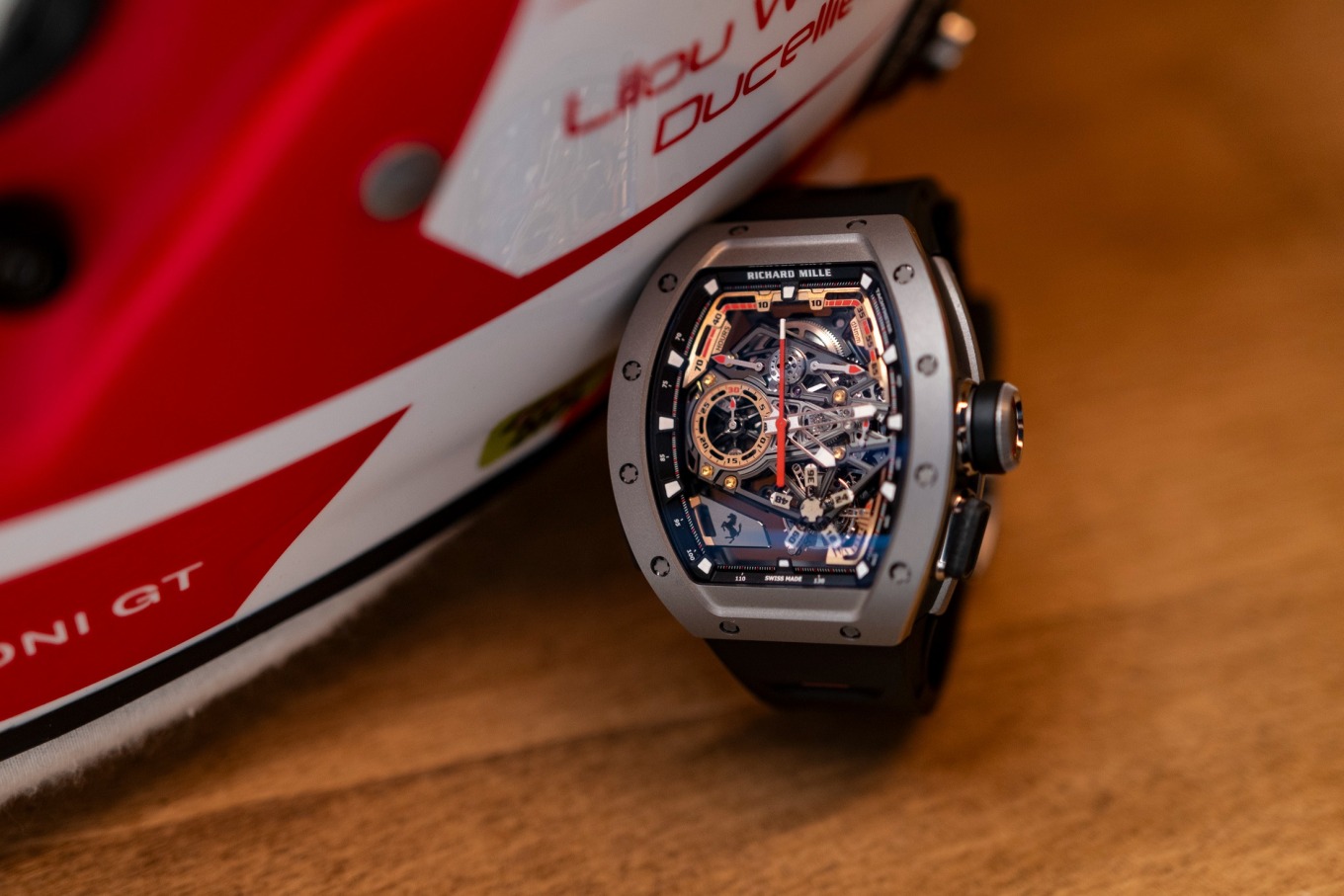 Η σιλουέτα παραμένει γνώριμη, αλλά κάθε λεπτομέρεια συνδέεται με τον κόσμο της Ferrari. Ο μηχανισμός περιλαμβάνει τουρμπιγιόν, που εξασφαλίζει απόλυτη ακρίβεια, ενώ η λειτουργία split-seconds επιτρέπει την ταυτόχρονη μέτρηση δύο γεγονότων, ιδανική για χρονομέτρηση γύρων ή αγώνων. Μεταξύ των 514 μερών του ρολογιού, οι βίδες με εξάγωνη κεφαλή παραπέμπουν σε εκείνες των καλυμμάτων κινητήρα της Ferrari, οι γέφυρες φέρουν σχέδιο Χ που θυμίζει την ενίσχυση των κινητήρων στο πλαίσιο και τα κουμπιά μοιάζουν με τα πίσω φώτα της SF90.