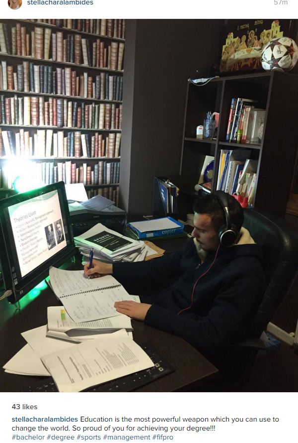 Ο ποδοσφαιριστής ολοκλήρωσε το πρόγραμμα σπουδών εξ αποστάσεως της FIFPro (FIFPro Online Academy) και έτσι πλέον είναι κάτοχος πτυχίου (Bachelor Degree) στην Αθλητική Διεύθυνση (Sports Management).