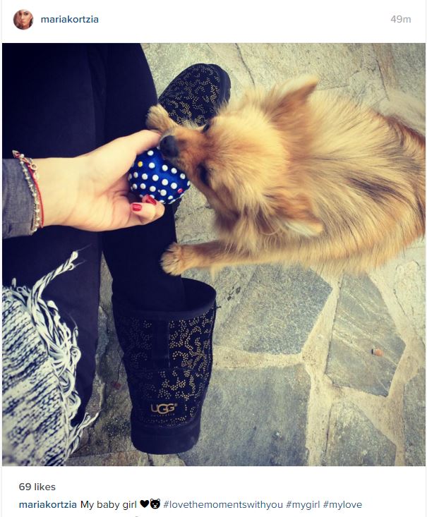 Η παρουσιάστρια ανέβασε την Τετάρτη το απόγευμα στο instagram μια φωτογραφία όπου παίζει με την σκυλίτσα της με μια μπάλα. Η λεζάντα της προδίδει τη σχέση με την σκυλίτσα της, μιας και όπως γράφει «Λατρεύω τις στιγμές μαζί σου. Κορίστι μου. Αγάπη μου».