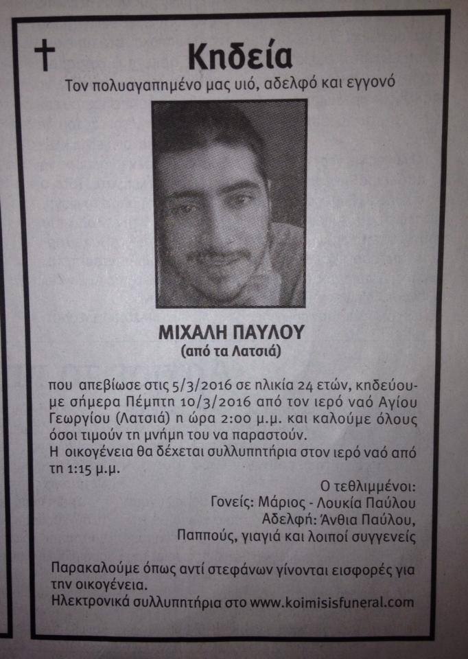 Θλίψη, πόνος και ένα αναπάντητο γιατί….κυριαρχεί για τους φίλους του Μιχάλη Παύλου, ο οποίος έφυγε από τη ζωή μόλις στα 24 του χρόνια.