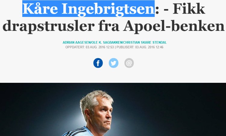 Μετά την καταστροφική ήττα της Ρόσενμποργκ ο προπονητής της νορβηγικής ομάδας προχώρησε σε δηλώσεις αναφέροντας ότι δέχθηκε απειλές κατά της ζωής του από τον πάγκο του ΑΠΟΕΛ.