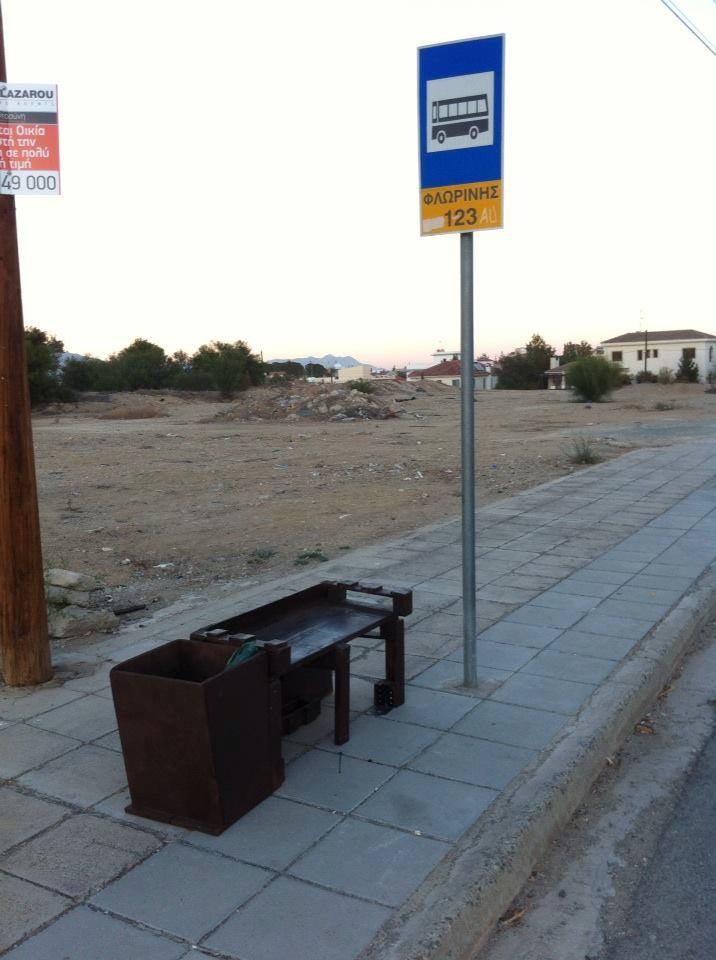 Όπως βλέπετε στην εικόνα, κάτοικος της περιοχής έφτιαξε παγκάκι για να κάθονται οι πολίτες που θα αναμένουν το λεωφορείο στην εν λόγω στάση.
