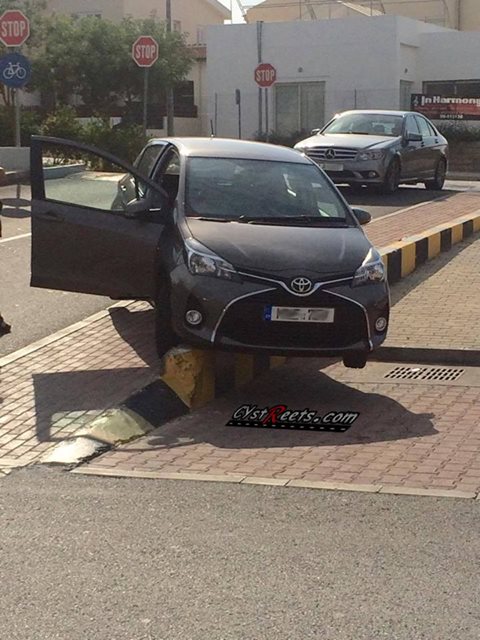 Στην πιο κάτω φωτογραφία που δημοσίευσε η ομάδα «CyStreets» στο Facebook, βλέπουμε ένα αυτοκίνητο κρεμασμένο κυριολεκτικά από το μικρό τοίχος που εφάπτεται με το πεζοδρόμιο.