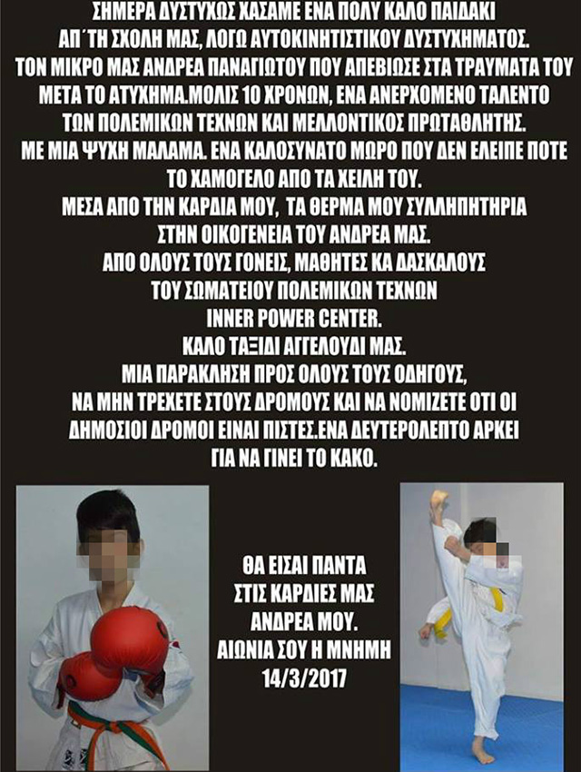 Ιδιαίτερα, οι άνθρωποι που γνώριζαν τον 10χρονο. Είναι απόλυτα χαρακτηριστική η ανάρτηση των ανθρώπων της σχολής πολεμικών τεχνών Inner Power Center.