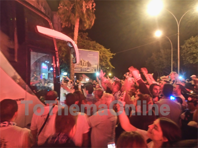 Στο αποκορύφωμα τους έφτασαν οι πανηγυρισμοί μόλις το λεωφορείο με τους ποδοσφαιριστές του Απόλλωνα έφτασε στο Συντριβάνι γύρω στις 11:30.